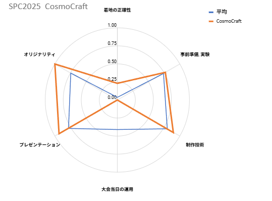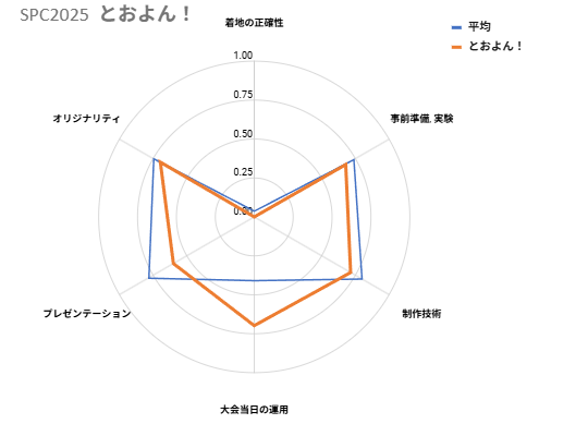 SPC初挑戦お疲れ様でした。自分たちの技術力を冷静に見極めて機体製作をされていると思います。これから沢山楽しい開発ができると思いますので今後の挑戦にも期待しています。